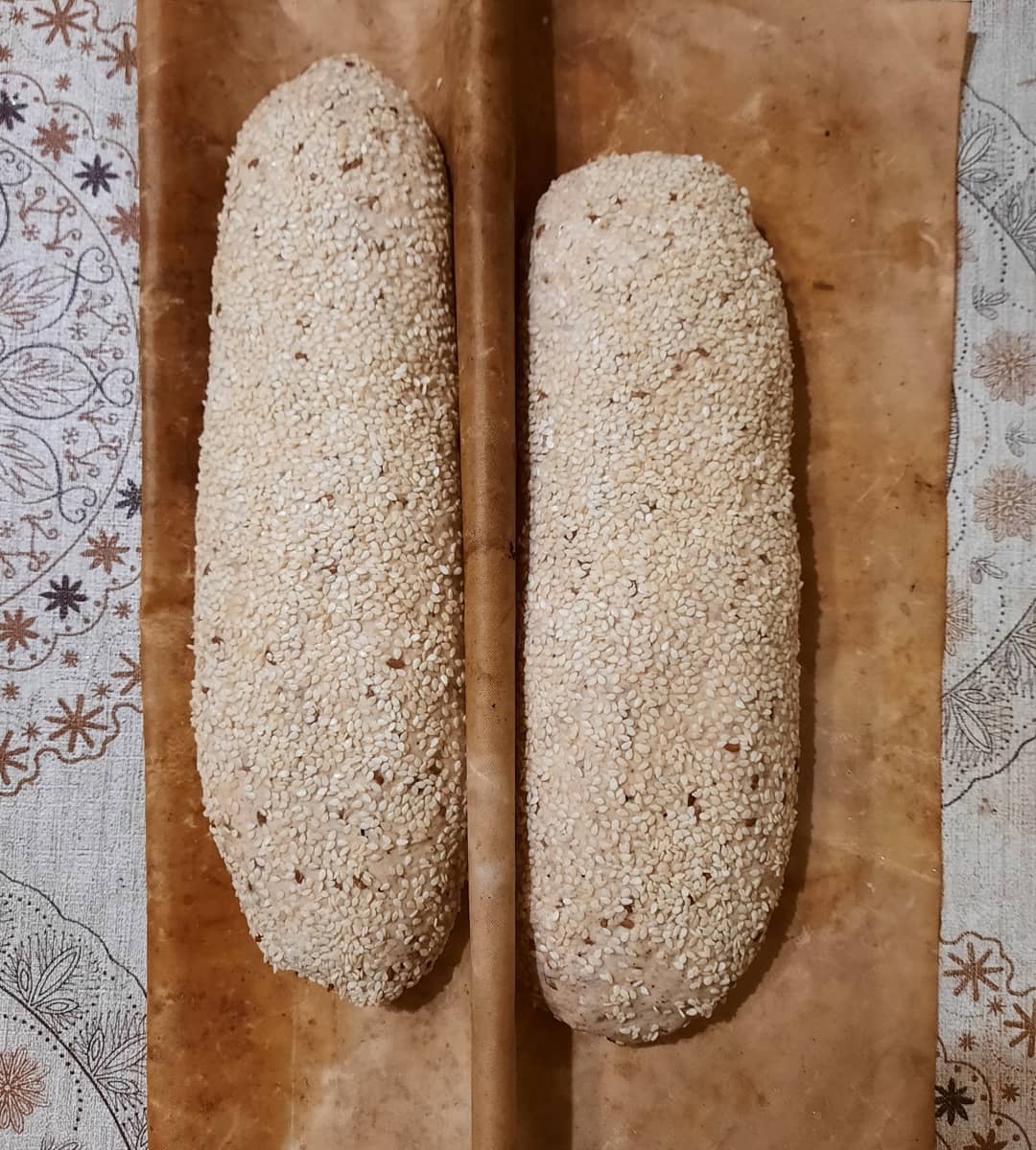 Рецепт этого хлеба я давала много раз на мастер- классах, диктовала под запись начинающим пекарям и чаще других публиковала в соцсетях. Потому что он быстрый, вкусный и полезный одновременно. Имеет выраженный ржаной аромат и при этом текстуру пшеничного хлеба. Обилие семян внутри и поджаренный кунжут на корке делают его идеальным праздничным хлебом. Коротко говоря, этот хлеб любят все, кто его пробовал, и в первую очередь моя семья. Готовлю его несколько лет , до сих пор никому из нас не надоел. Мне больше всего нравится именно то, что он быстро поднимается. Но это, конечно, при условии, что вы используете хорошую, здоровую, сильную закваску. Например, Хлеб счастья. Из этого теста получаются и вкусные булочки для бургера, и гриссини, и темные багеты. Ну а я предпочитаю этот хлеб в форме батона, потому именно эта формовка дает оптимальное соотношение корки и мякиша.