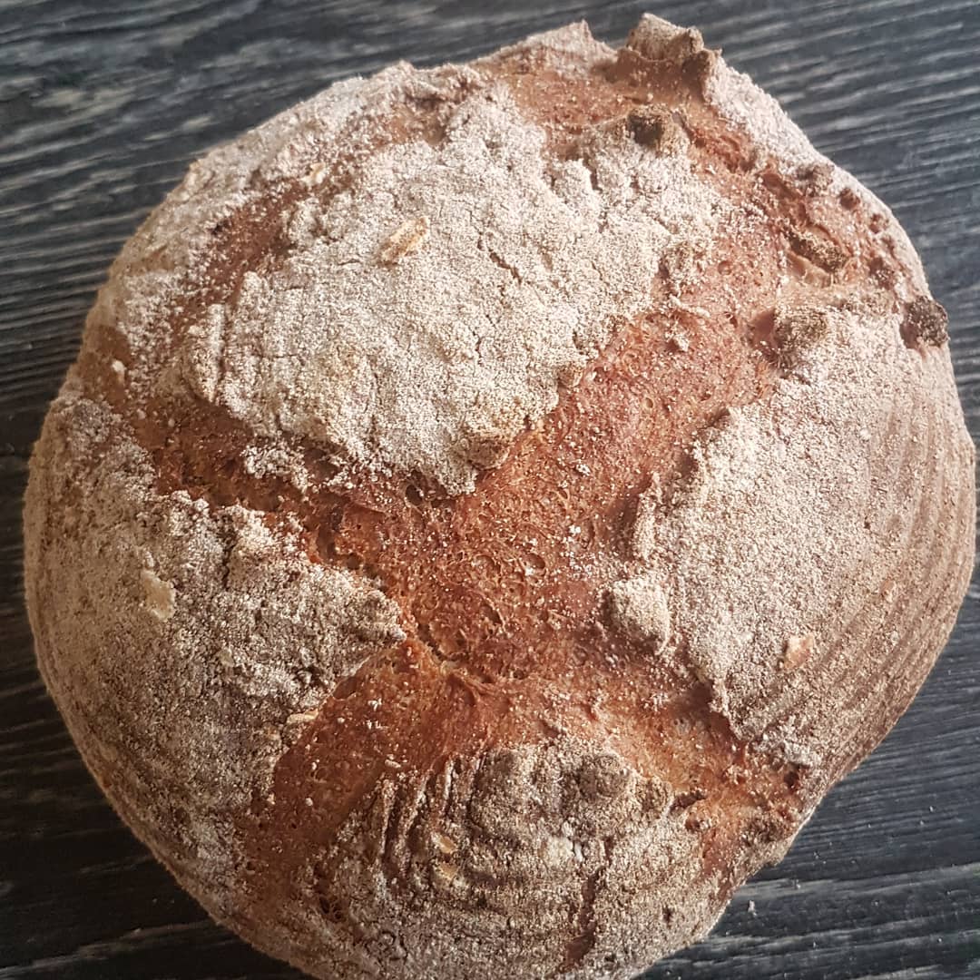 Сами его очень любим и вам советуем попробовать. Этот хлеб готовится в несколько этапов. Сначала заварка из солода и цельнозерновой ржаной муки осахаривается при температуре 65 градусов, после она сбраживается закваской, затем на этой опаре замешивается тесто с добавлением орехов и сухофруктов.