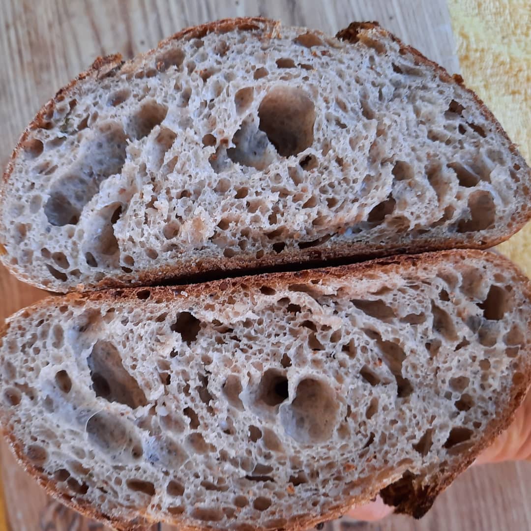 Пшенично- гречневый хлеб на ржаной закваске. Мне нравится сочетание двух, а то и трех видов муки в хлебе. В этот раз я ввела ржаную муку в пшеничный хлеб через опару.